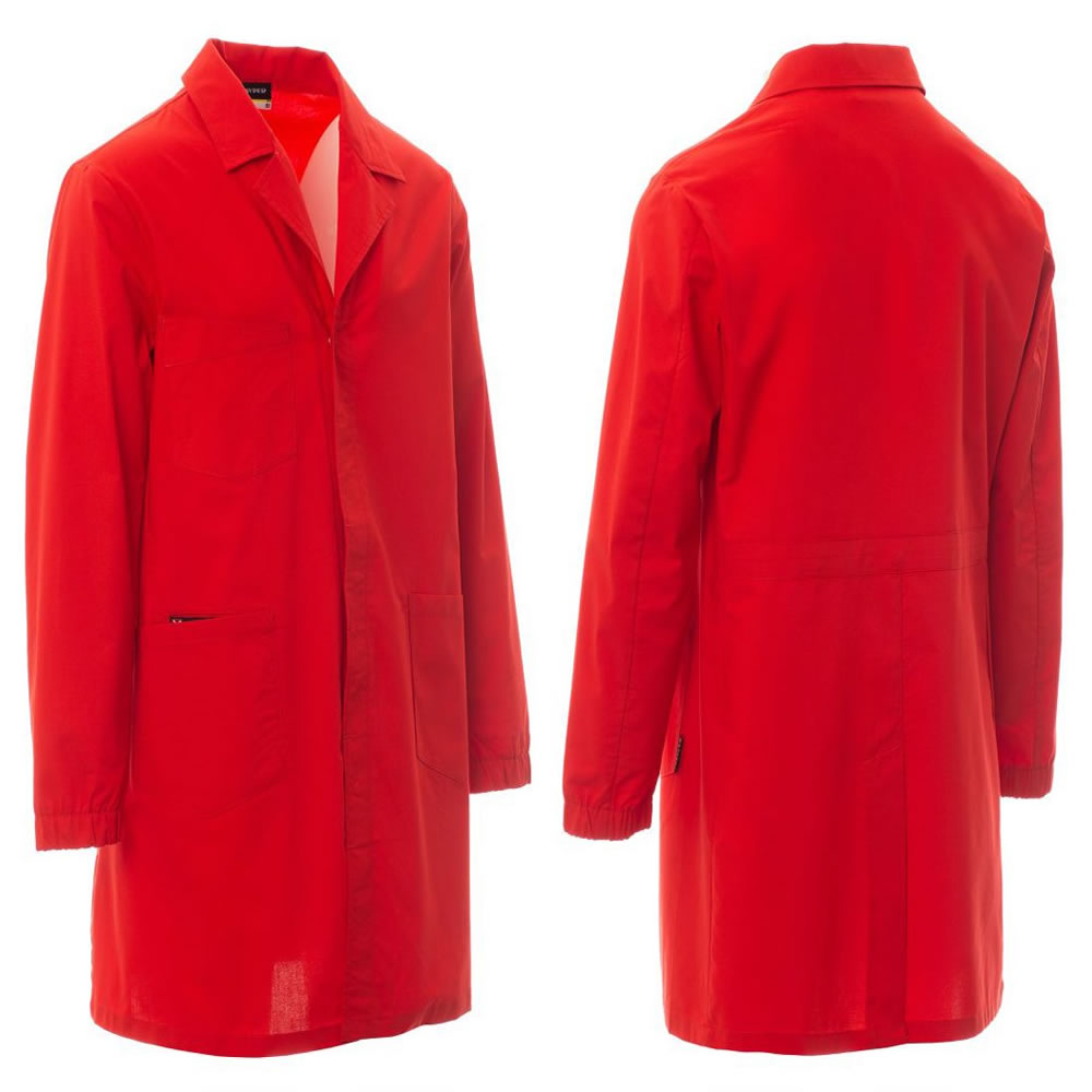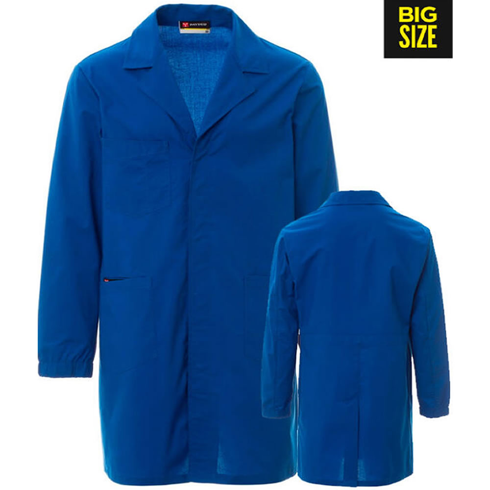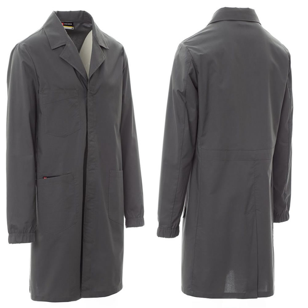 Bata para hombre con cuello con solapas clásico, cerrada en el delantero con botones automáticos, botonadura cubierta, un bolsillo aplicado a la altura del pecho con compartimento para bolígrafo, dos bolsillos aplicados a la altura de la cintura, un pequeño bolsillo para teléfono móvil, espalda con canesú liso, abertura en la espalda para facilitar los movimientos, manga larga con puños ajustables con elásticos.