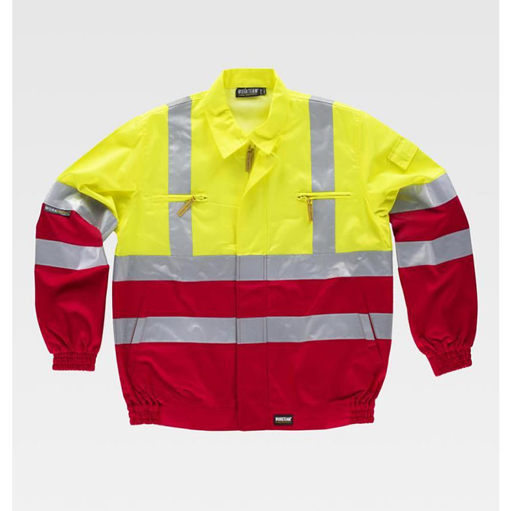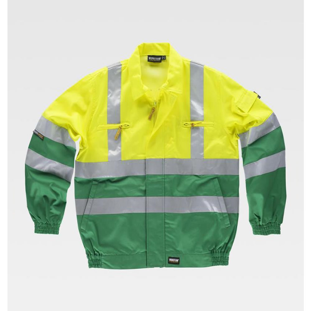 Cazadora combinada alta visibilidad con cintas reflectantes.