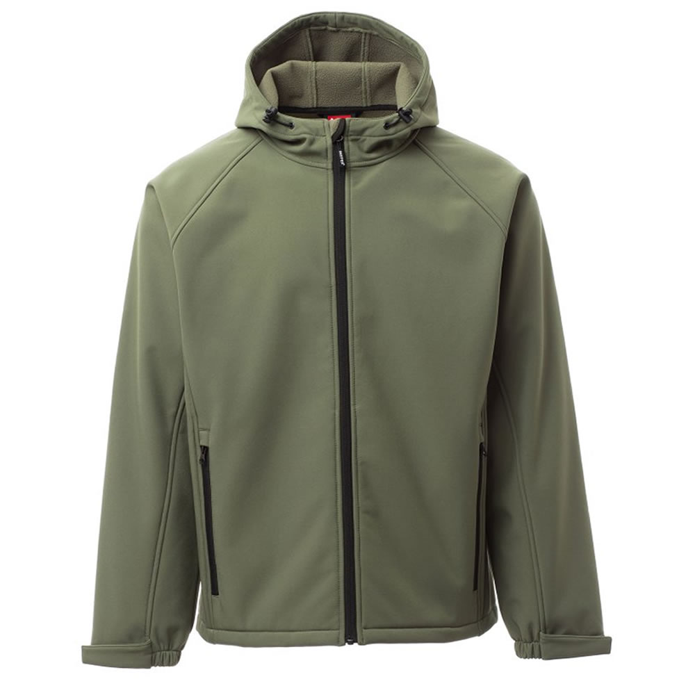 Soft-shell de tres capas, de hombre, manga raglán, cierre de cremallera SBS con cinta y cursor de metal. Capucha contorneada con dos costuras y cordón con tope. Puños elásticos ajustables con cierre de gancho y bucle. Dos bolsillos exteriores con cremallera.