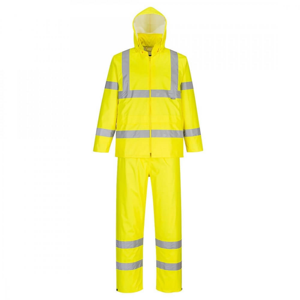 Un traje de lluvia plegable de alta visibilidad extremadamente práctico e impermeable. Con todas las impresionantes propiedades de nuestra serie 190T y diseñado para mantener al usuario visible, seguro y seco en condiciones meteorológicas adversas, el traje H448 ofrece una excepcional relación calidad/precio. Esta prenda puede enrollarse y guardarse fácilmente cuando no se utiliza.