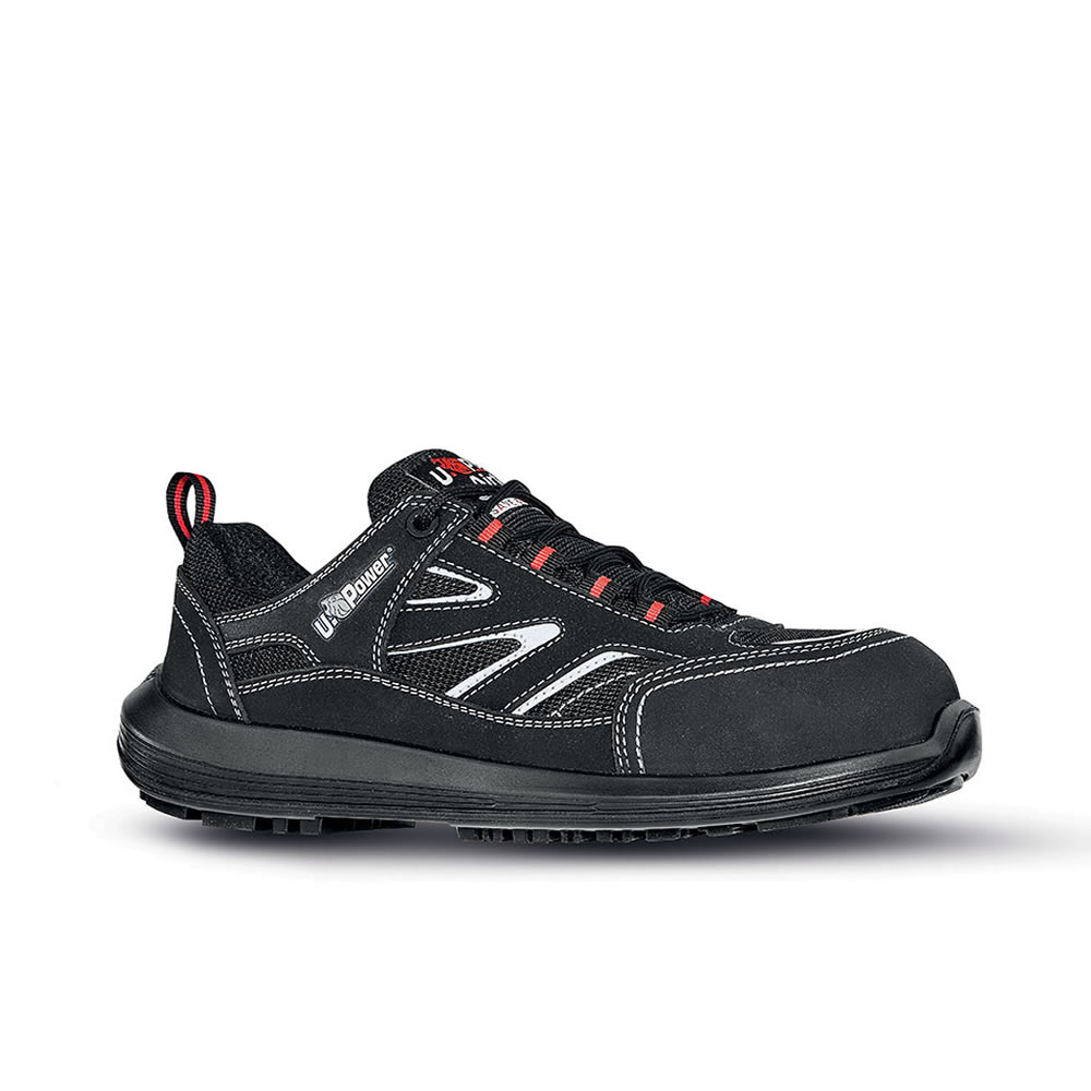 Zapados de seguridad bajos totalmente «metal free», cómodos y ligeros U-Power de la línea Rock&Roll, con parte superior en en piel suave con inserciones en Mesh transpirable, puntal AirToe Composite, antiperforación, antideslizante y suela PU/PU.
